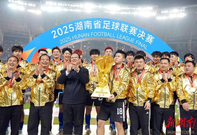 编辑丨董鑫 12月27日晚,2025年湖南足球联赛(简称“湘超”)在长沙举行。永州队1:0战胜常德队,夺得2025年湖南超级联赛冠军。据湖南日报报道,全国政协副主席、国民党革命委员会常务副主席何宝祥出席了比赛。省委副书记、省长毛伟明为冠军队伍颁奖。副省长姜迪飞为常德队队员、教练员颁发银牌、亚军奖牌。何宝祥、毛伟明称赞,17周以来,14支参赛球队用汗水、拼搏和毅力,为全省人民奉献了一场精彩、有趣、难忘的湘超联赛,成为湖南“开箱即用”的赛事品牌。这是必要的进一步强化赛事溢出效应,推动体育与文旅、商业、会展等产业深度融合,将湘超联赛的热点流量转化为强劲发展。 2025年“湘超联赛”将于9月7日开赛,湖南14个市州将组队参赛。夺冠的永州队平均年龄19.8岁。这是一支由两名“90后”和一群追逐梦想的“00后”组成的年轻团队。主教练黄楚如出生于1992年,队长张化月出生于1997年。队员以在校学生为主,其中永州日升学校的队员有17人。他们白天有课,有工作,晚上就可以利用时间练习。这支身穿蓝色球衣的“学生军”每场比赛都全力以赴,战斗到最后一刻。随着比赛的继续,永州队“遇强则强”据了解,湘超比赛期间,湖南各地区着力推动“体育+消费”深度融合,将比赛门票升级为文化旅游“通关证件”,在主力消费区域打造“二次场景”。赛事期间,主场城市共接待游客6324.9万人次,拉动总消费128.19亿元。