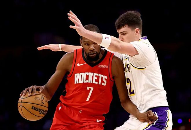 北京时间12月26日,圣诞节比赛中,休斯敦火箭队客场以119-96击败洛杉矶湖人队。这场比赛是火箭六连胜的最后一场。这六场比赛,球队2胜4负。有趣的是,球队的表现似乎是“劫富济贫”。火箭队赢下的两场比赛分别是对阵排名更高的对手掘金队和湖人队。他们输掉的四场比赛中有三场是对阵目前西部前三的国王队、鹈鹕队和快船队。另一场失利是输给了掘金队。火箭队在篮板球上继续保持着较大的球队优势。球队总篮板数以48-25击败湖人队23个,其中前场篮板10个,17-7。火箭队球员沉静得到12个篮板,亚当斯得到9个篮板。在谈到本场比赛时,杜兰特说道:“我们刚刚经历了一场艰难的客场之旅,所以现在我们要抓紧时间踢48分钟。在这场客场比赛中,我们受到了困扰。”在某些阶段表现不佳,导致我们输掉了一些比赛。因此,我们的目标是打48分钟!”此役杜兰特表现出色,他打了33分钟,14投8中,三分球6中4,罚球5中5,得到25分4篮板9助攻1抢断2盖帽,正负值+26。